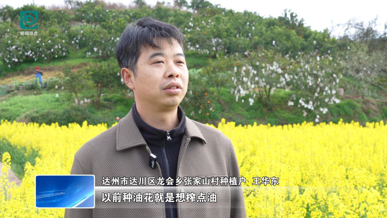 达州市达川区龙会乡张家山村种植户 王华东:以前种油花就是想榨点油,现在种这个油菜,还能卖“风景”。这段时间我们家游客来得比较多,光耙耙柑就卖了1万多块钱。
