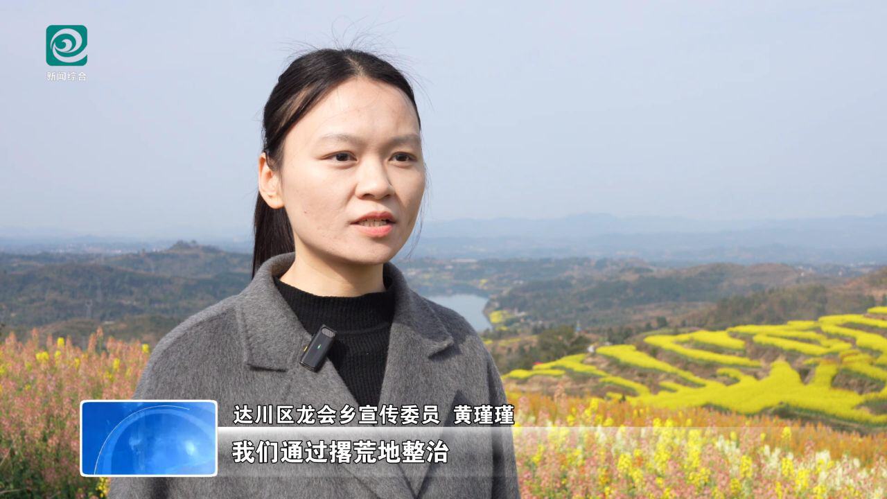 达川区龙会乡宣传委员 黄瑾瑾:我们通过撂荒地整治,整合梯田资源,种植了7000余亩油菜,打造了荒山梯田油菜花海、高速公路沿线梯田油菜花海、果园复合套种梯田油菜花海三大品牌,既守住了粮油生产底线,也带活了柑橘等农副产品销路,切实把生态优势转化为产业优势,让老百姓实现稳定增收。