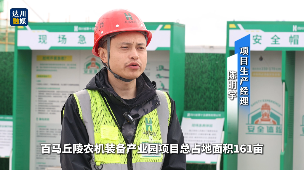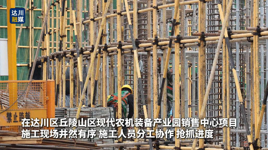 在达川区丘陵山区现代农机装备产业园销售中心项目,施工现场井然有序,施工人员分工协作、抢抓进度。