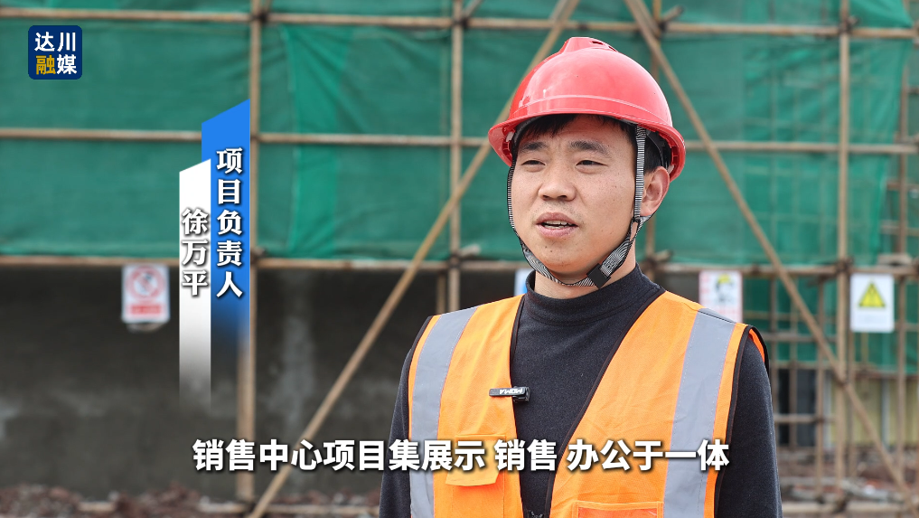 项目负责人 徐万平:销售中心项目集展示、销售、办公于一体,建筑面积约为2000平方米,春节后,我们组织工人加班加点抢工期赶进度,现已完成总体施工的50%。
