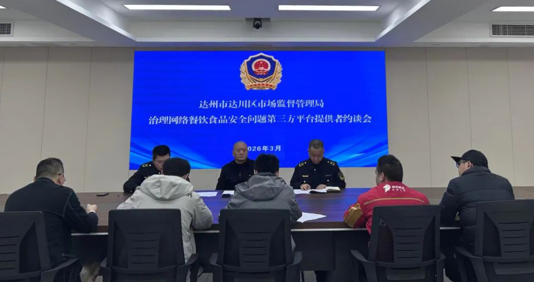 为深入贯彻食品安全“四个最严”要求,规范网络餐饮服务经营秩序,切实保障群众饮食安全,3月5日,达川区市场监督管理局组织召开辖区网络餐饮服务第三方平台提供者食品安全约谈会,集中约谈辖区美团、淘宝闪购、京东秒送等网络餐饮服务平台负责人,专题部署外卖订餐食品安全管理工作。