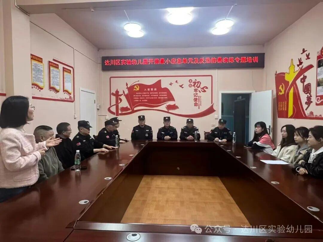 为切实筑牢校园安全防线,以最高标准、最严举措保障师幼生命安全,着力构建“公安、学校、家庭、社区”四位一体的“警校家社”联动机制。3月13日下午,达川区实验幼儿园特邀达州市达川区仙鹤路派出所民警及安保公司专业教官入园,联合开展最小应急单元及反恐防暴专项培训与实战演练,以训促战、以演筑防,为全园师幼安全保驾护航。