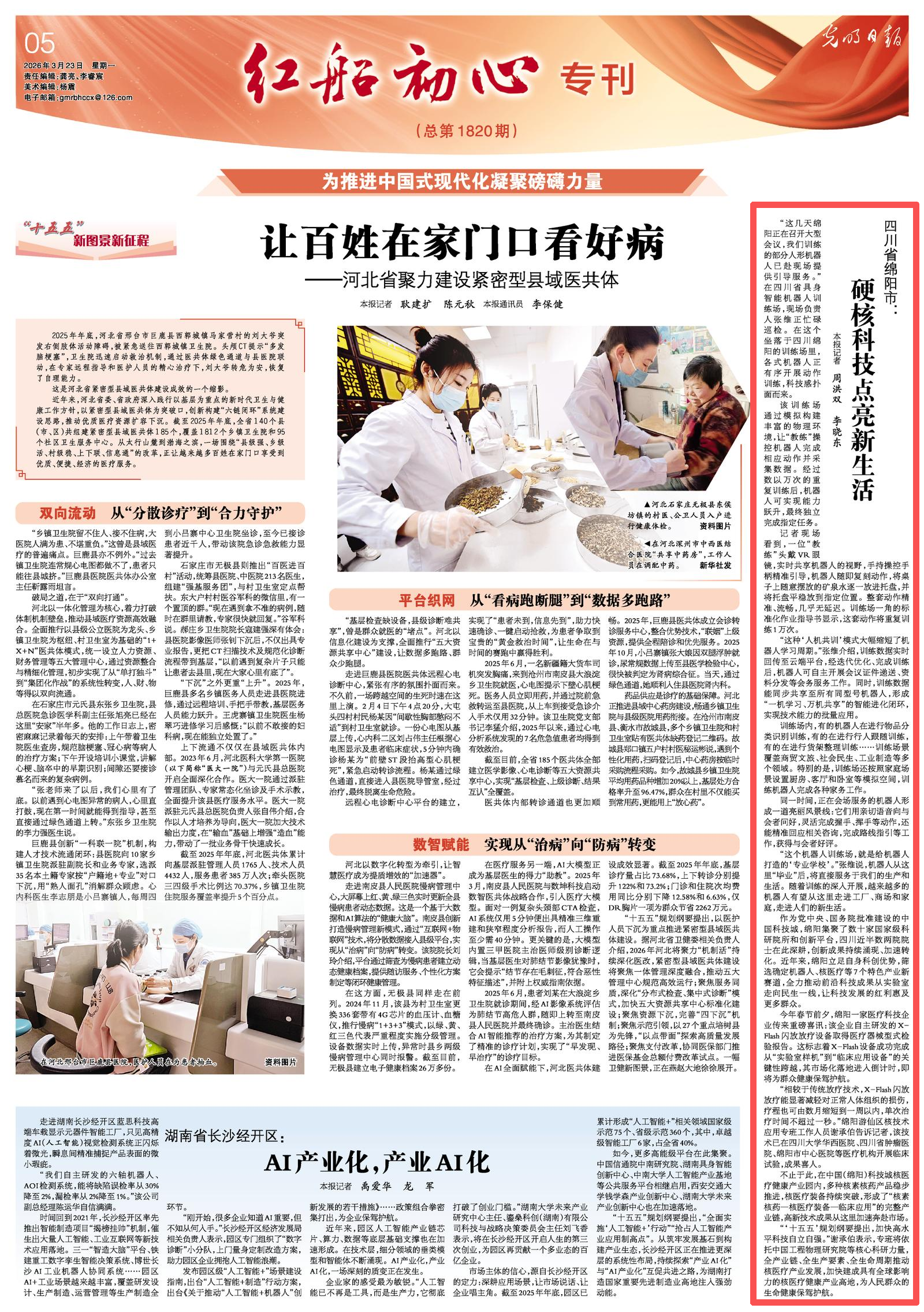 作为党中央、国务院批准建设的中国科技城,绵阳集聚了数十家国家级科研院所和创新平台,四川近半数两院院士在此深耕,创新成果持续涌现、加速转化。近年来,绵阳立足自身科创优势,筛选确定机器人、核医疗等7个特色产业新赛道,全力推动前沿科技成果从实验室走向民生一线,让科技发展的红利惠及更多群众。