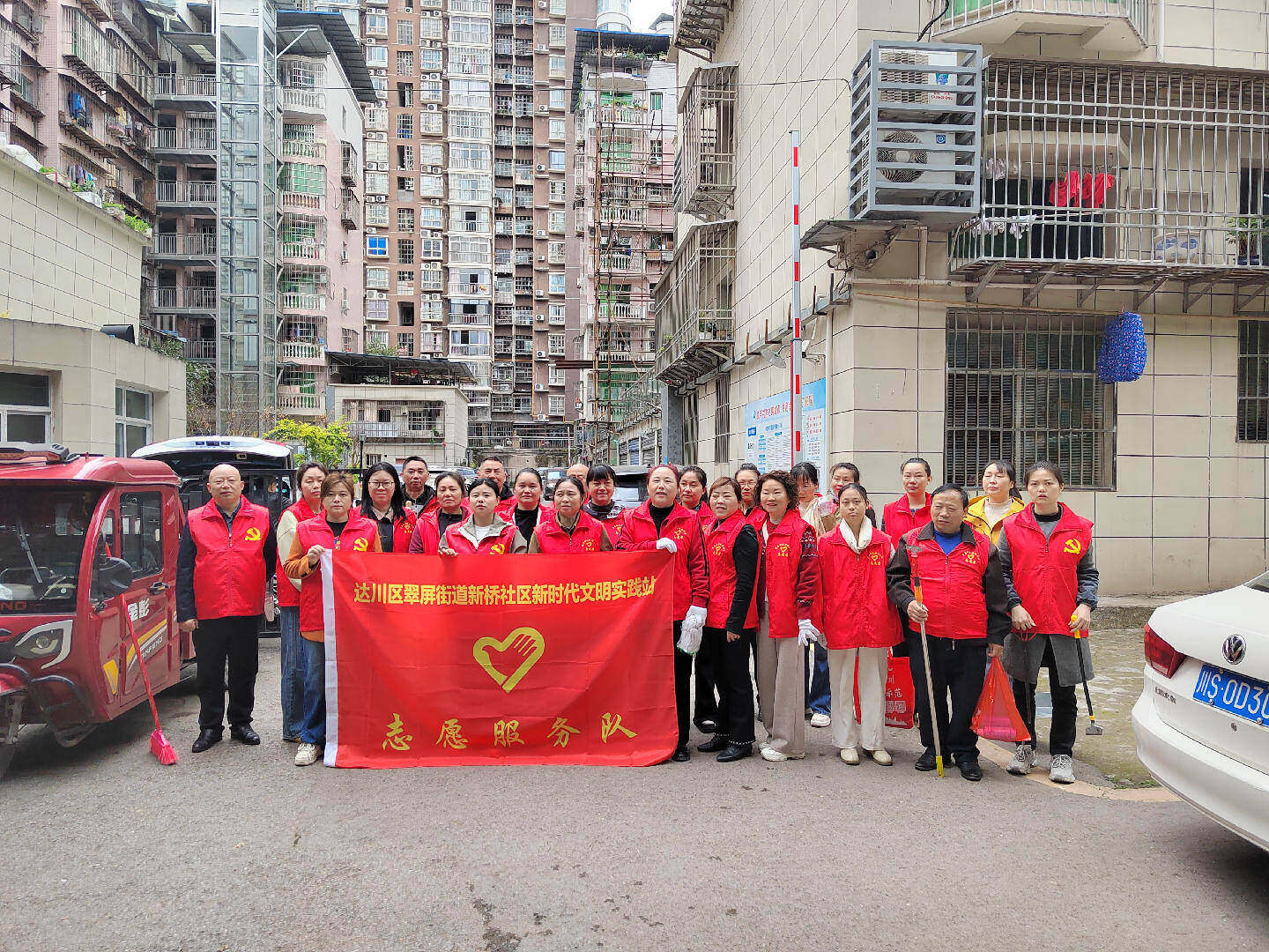 活动中,志愿者们身着红马甲、手拿扫帚、铁锹、火钳、铲刀等工具,分工协作、干劲十足。大家聚焦辖区重点区域,对老旧小区、背街小巷、绿化带、楼道走廊、顶楼等进行“拉网式”清理,清除枯枝落叶、白色垃圾,铲除墙体及公共设施上的“牛皮癣”小广告,搬运楼道内堆积的杂物、废弃家具,擦洗宣传栏、健身器材等公共设施,不放过任何一处卫生死角。