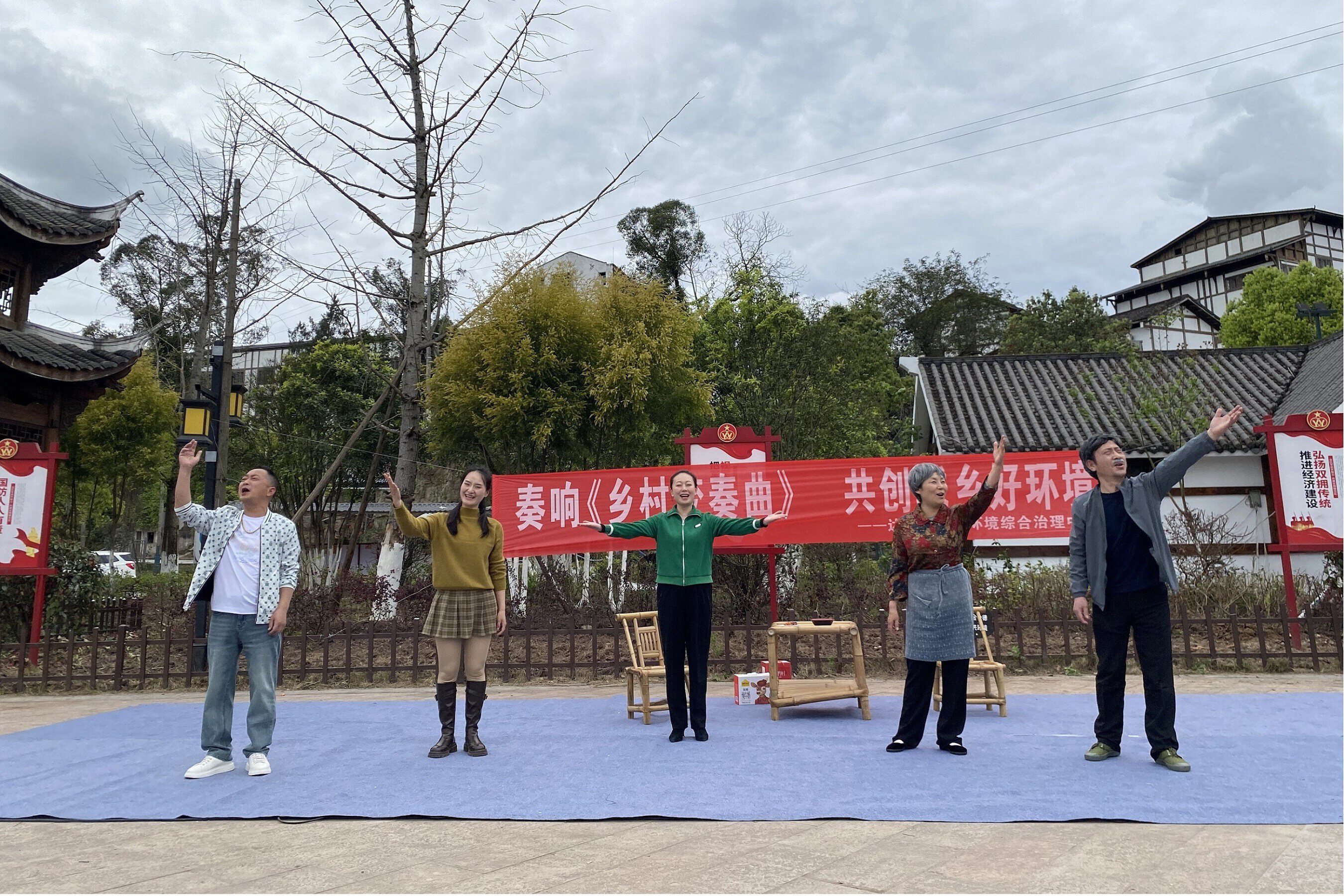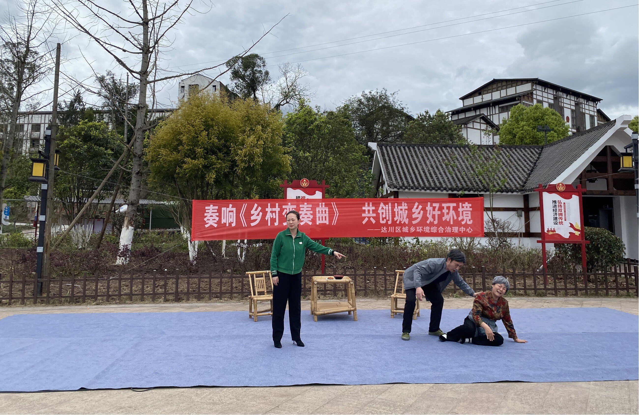 此次展演的原创小品《乡村协奏曲》紧扣我区城乡环境治理实际,聚焦村容村貌提升、生活垃圾处置、庭院清洁美化、乡风文明培育等重点工作,用接地气的乡音、鲜活的人物形象和贴近生活的故事情节,生动展现了乡村环境从“脏乱差”到“洁净美”的显著变化,直观诠释了“环境治理人人有责、美好家园家家受益”的深刻道理。演出中,演员们通过一句句朴实真挚的台词引发观众共鸣,如“爹、妈,你看这屋头乱糟糟的,咱们家这样子,我咋好找对象、咋让你们抱孙子嘛?”,既贴近生活又诙谐生动。演员们将垃圾分类、庭院整治、文明习惯养成等知识融入剧情,打破了传统宣传的枯燥模式,让现场群众在欢声笑语中接受教育、产生强烈共情,真切感受到环境治理与日常生活息息相关。