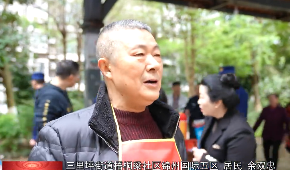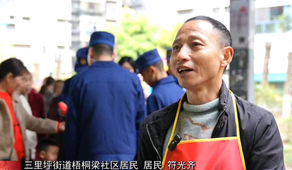 三里坪街道梧桐梁社区锦州国际五区 居民 余双忠:今天消防大队宣传的消防知识,我确实是学到了。灭火器的使用,一提二拔三握四压,还有电动车不能到楼道充电,要到指定的地方。