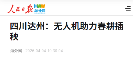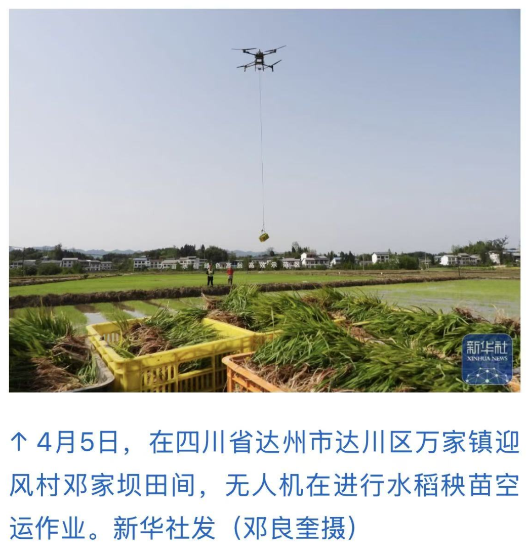 近日,拍摄于达川区万家镇迎风村的一张春耕照片,先后被《新华社》和《人民日报海外网》报道。镜头里,无人机吊起水稻秧苗在空中穿梭,科技感满满,硬核又震撼!