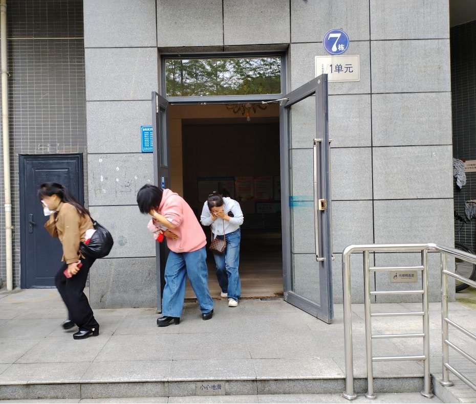 这一幕其实不是真正的火灾,而是社区组织的一次应急逃生演练。