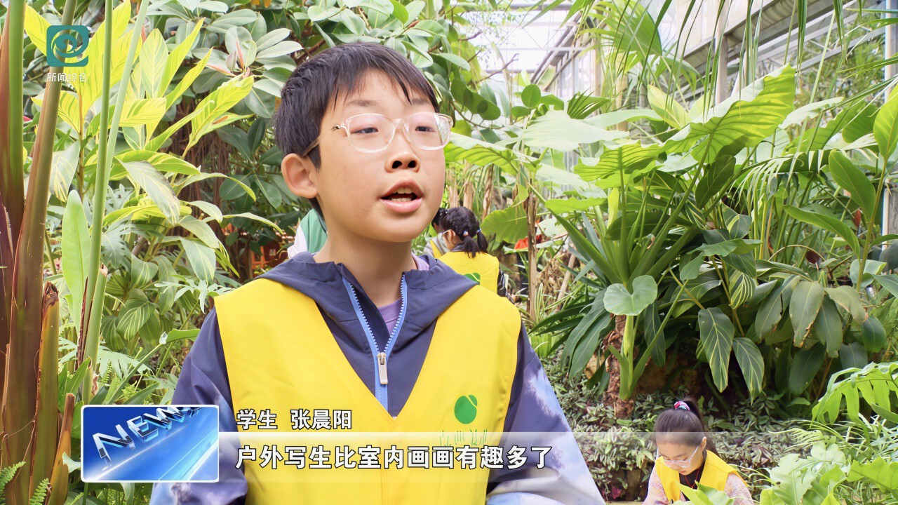 学生 张晨阳:户外写生比室内画画有趣多了,我们可以画不同的东西,比如一棵树、一朵花,看到什么就可以画什么,整个花园都是大自然的味道。