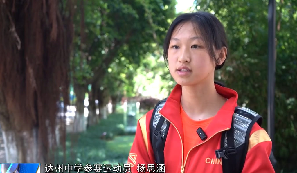 达州中学参赛运动员 杨思涵:这是我第4次参加市里的运动会,我连续三年拿第一名,每年都在刷新自己的成绩,为学校争光的同时我也觉得特别骄傲,以后我也会继续努力训练,在更高的平台取得更好成绩。
