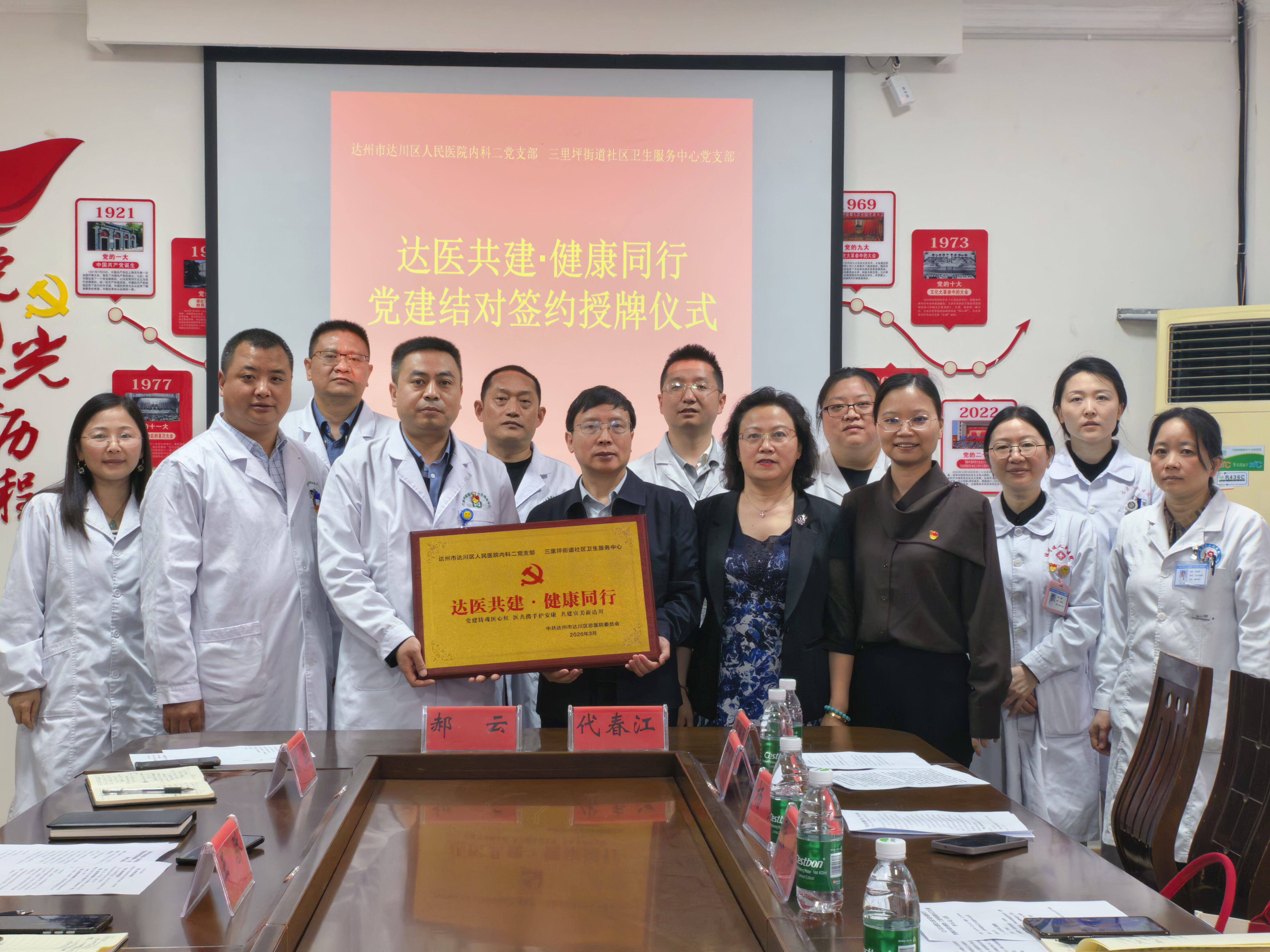 为深入贯彻落实紧密型县域医共体建设要求,推动优质医疗资源下沉基层,4月20日,达川区三里坪街道社区卫生服务中心与达川区人民医院内科二党支部举行“达医共建·健康同行”党建结对签约授牌仪式。