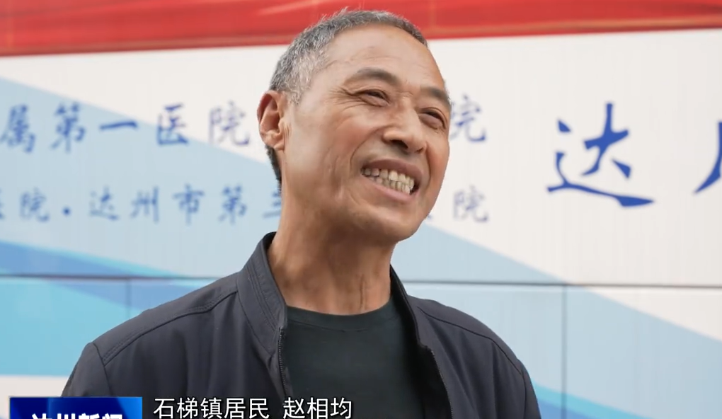 石梯镇居民 赵相均:我这次是来这里检查肺的,以前经常在城里去检查,主要是难得跑,这次这里搞活动,确实还是多可以的,就免得跑路,就在这里检查,感谢政府。