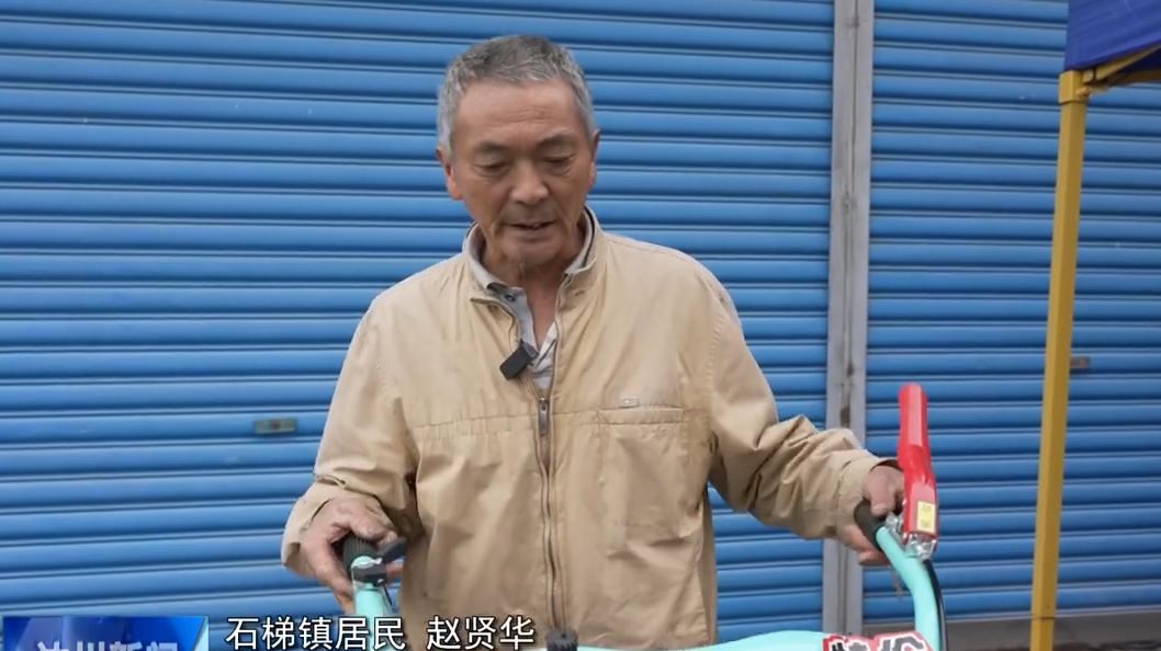 石梯镇居民 赵贤华:我家里种了三四亩土地,我也想来换个电子打火的耕田机,用那个旧的来换,这个国家还补贴了640元,很划算。我们年龄大了,那个手拉操作不方便,换个电子打火的,省力。