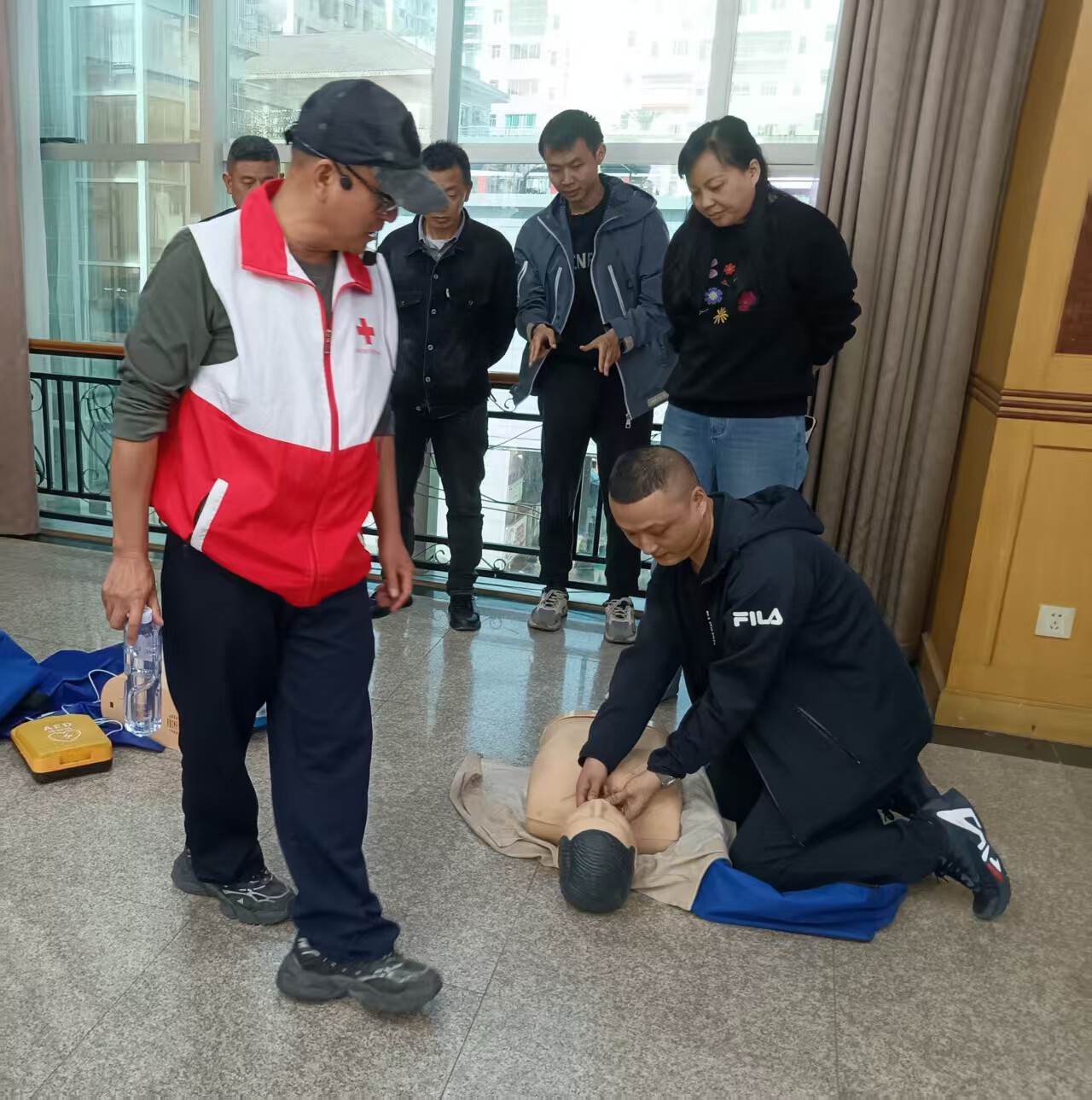 本次培训采用“线上+线下”模式进行。线上培训,全体学员通过“救在身边应急救护服务平台”,完成线上理论学习与考核测试,系统掌握红十字运动、救护概论、心肺复苏、创伤救护等基础理论知识,为线下实操奠定坚实基础。