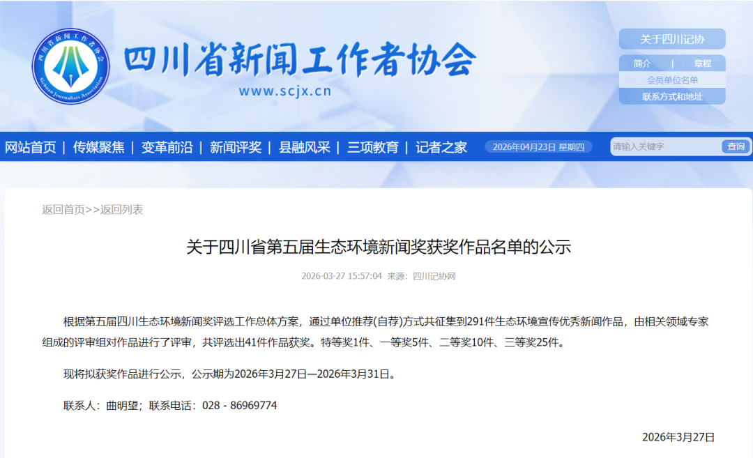获得第五届四川生态环境新闻奖