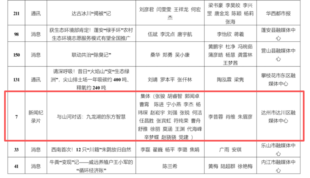 作为全市唯一获奖作品,新闻纪录片仅此一部,也是达川融媒首次斩获四川省生态环境奖奖项。据了解,本次共有中央、省、市、县级媒体291件作品参评,仅41件作品获奖。